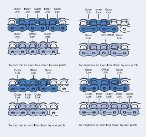 La maquinaria de embalaje emplea varios tipos de cadenas, cada una diseñada para cumplir funciones específicas dentro del sistema. A continuación se muestran algunos tipos comunes: